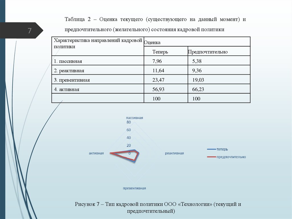Рисунок 7 – Тип кадровой политики ООО «Технологии» (текущий и