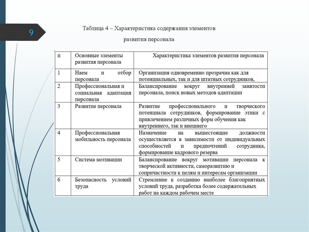 модернизация системы развития персонала; создание и развитие программы кадрового резерва;