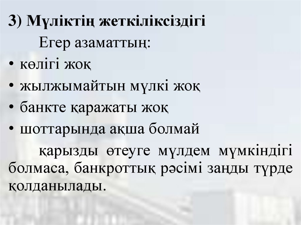 экономикалық жағынан қабілетсіздігін заң жүзінде