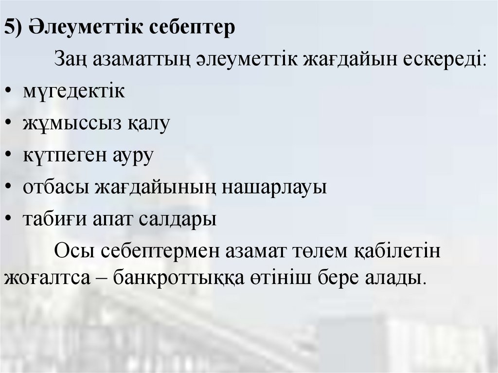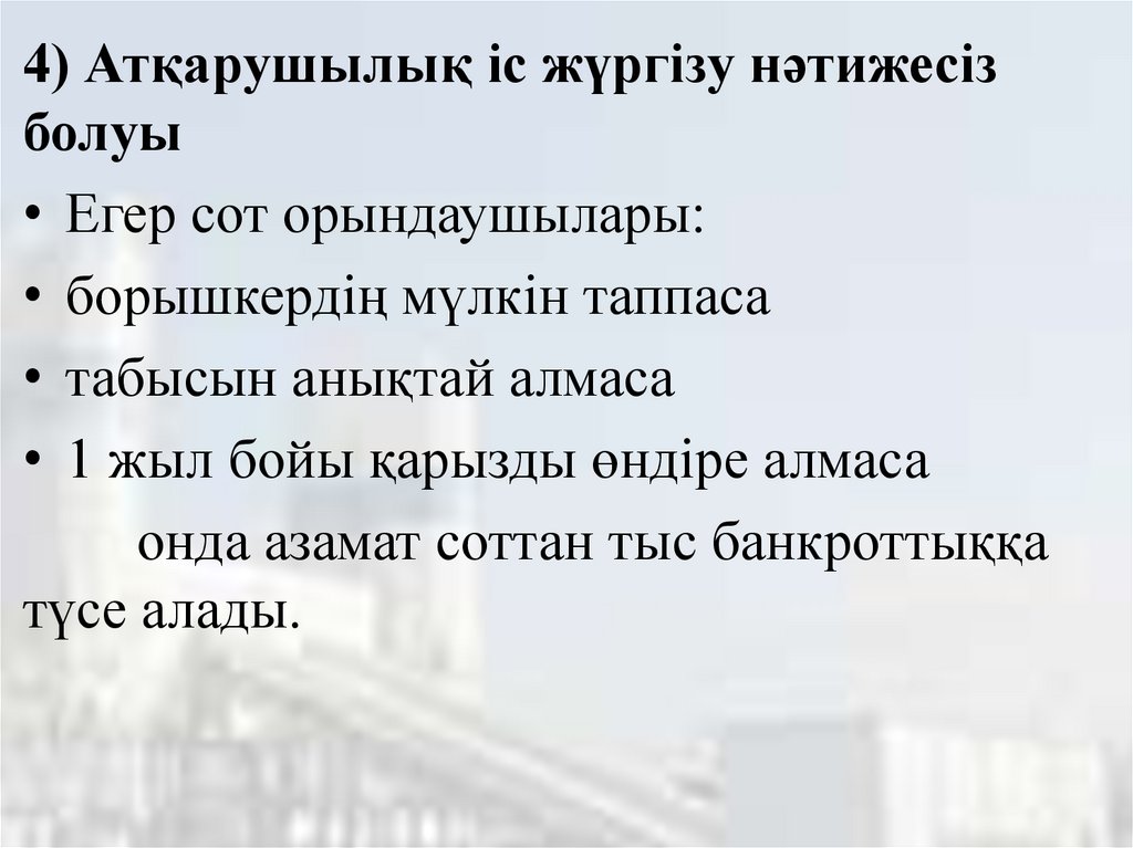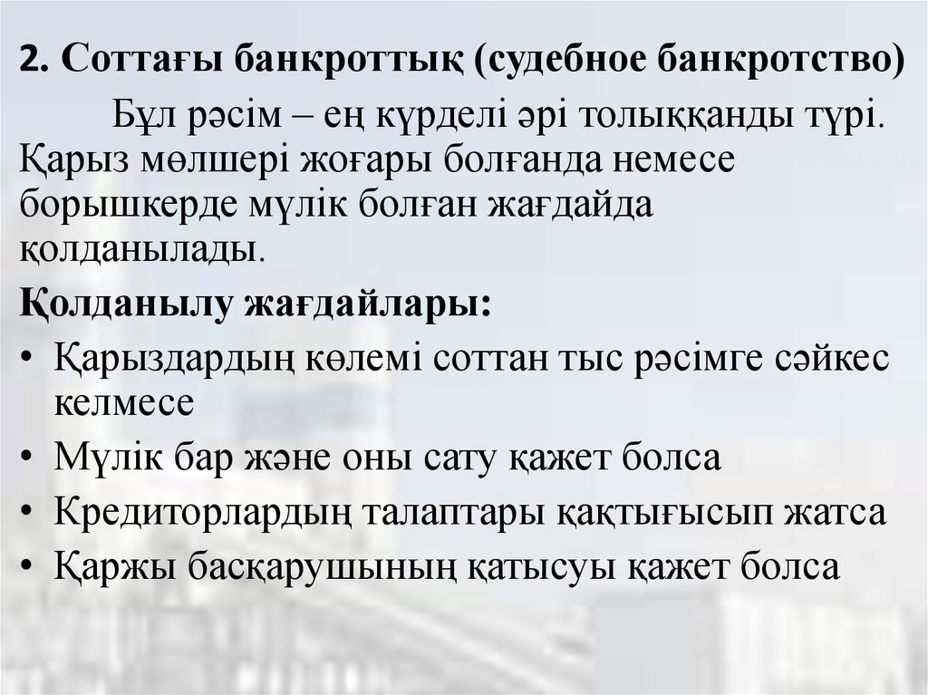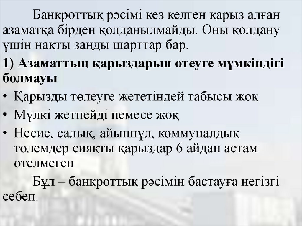 Бұл – банкроттық рәсімін бастауға негізгі