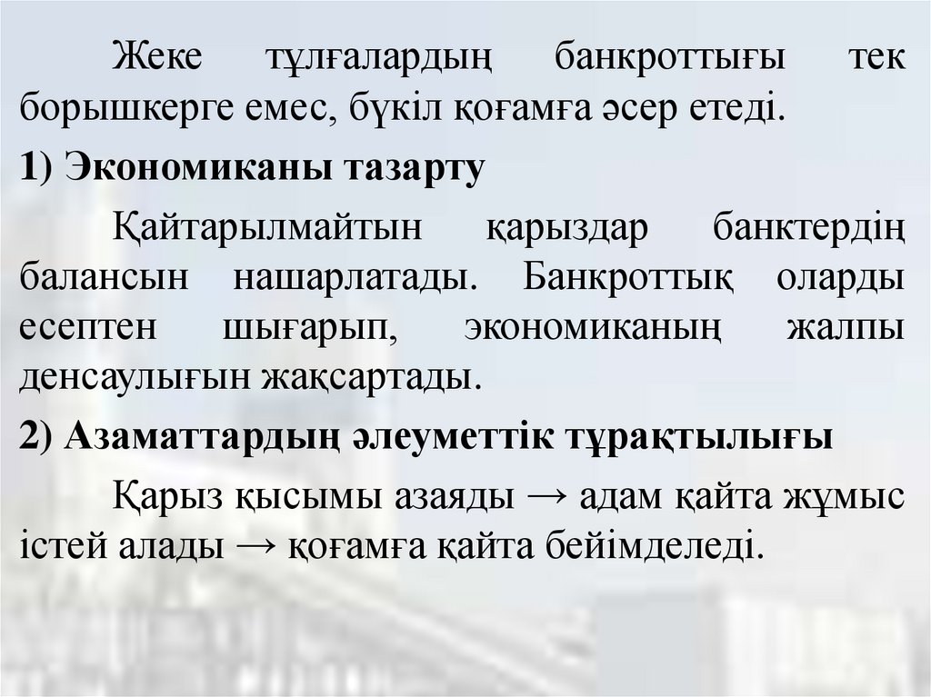 - Жеке тұлғалардың банкроттығының мәні және