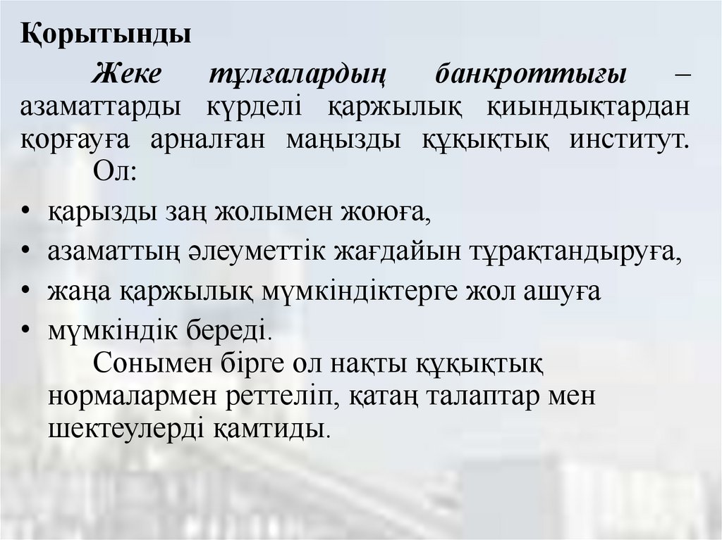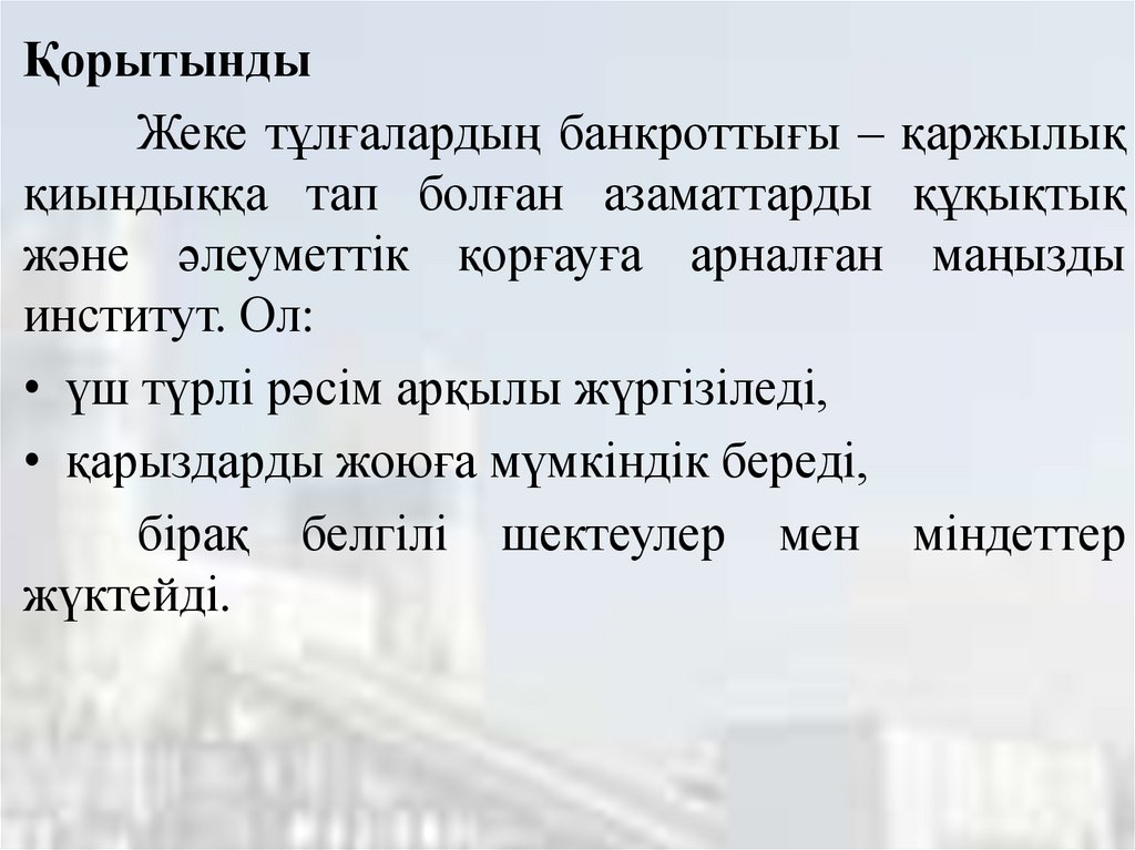 ҚорытындыЖеке тұлғалардың банкроттығы – қаржылық