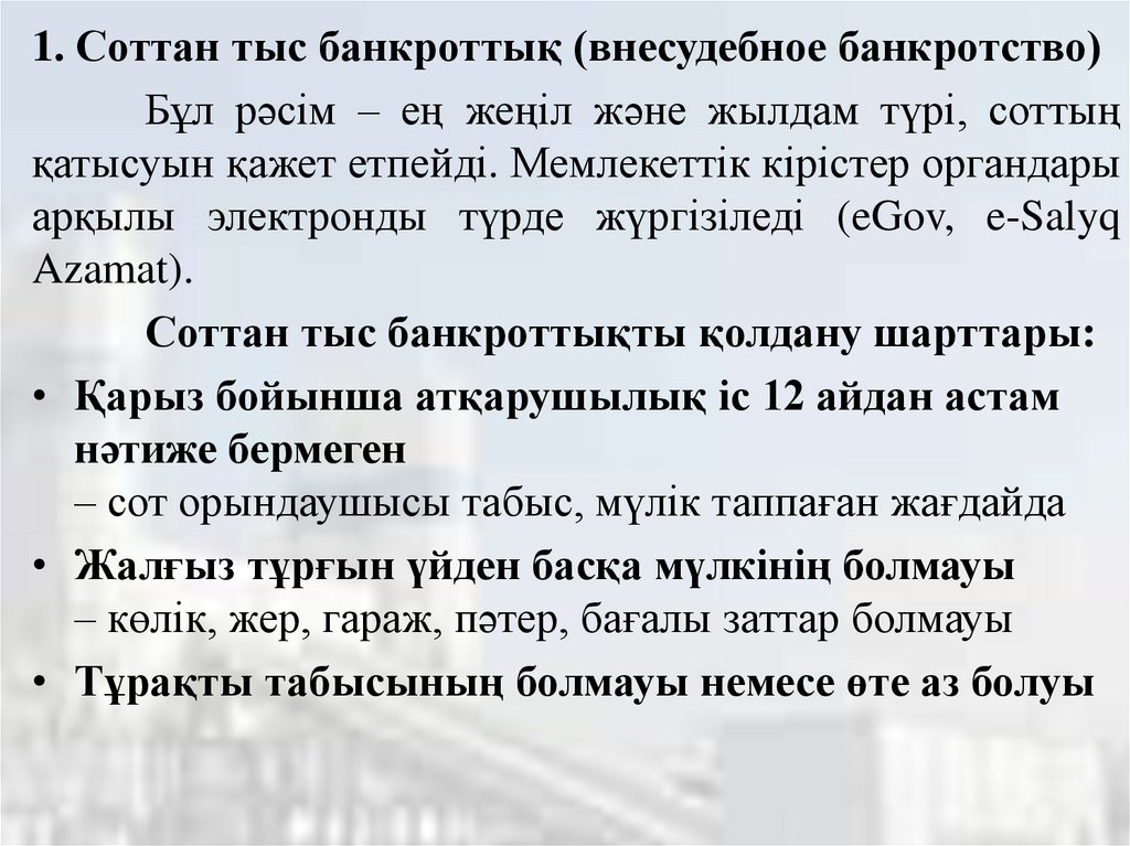 Банкроттық рәсімі кез келген қарыз алғаназаматқа бірден қолданылмайды. Оны қолдану