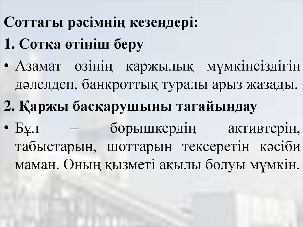 - Банкроттық рәсімінің жүргізілу тәртібі және