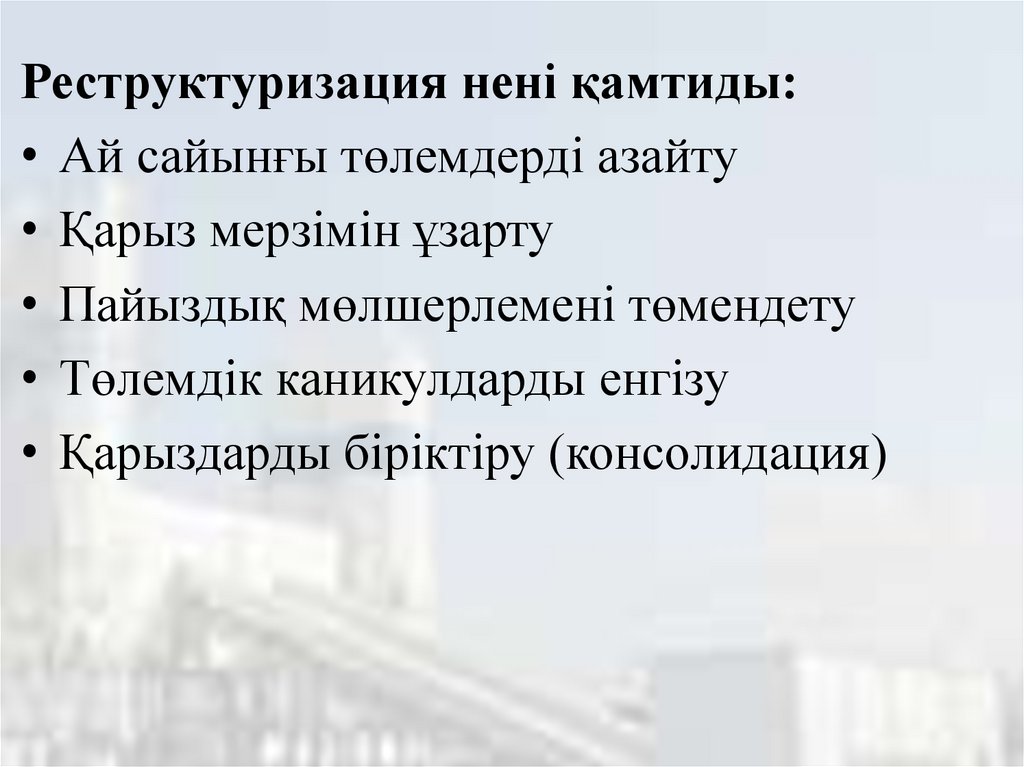 • қарыздардың қалай өтелетінін