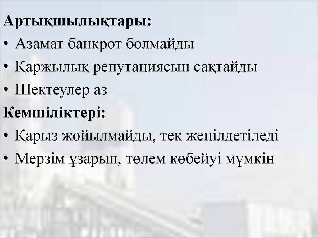 • Мерзім ұзарып, төлем көбейуі мүмкін