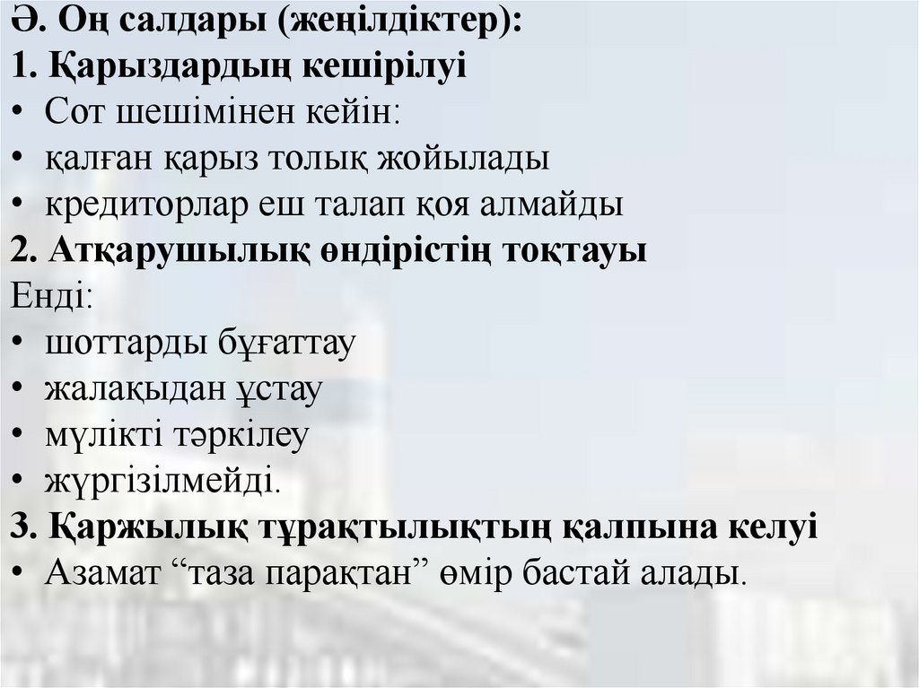 Ә. Оң салдары (жеңілдіктер):1. Қарыздардың кешірілуі