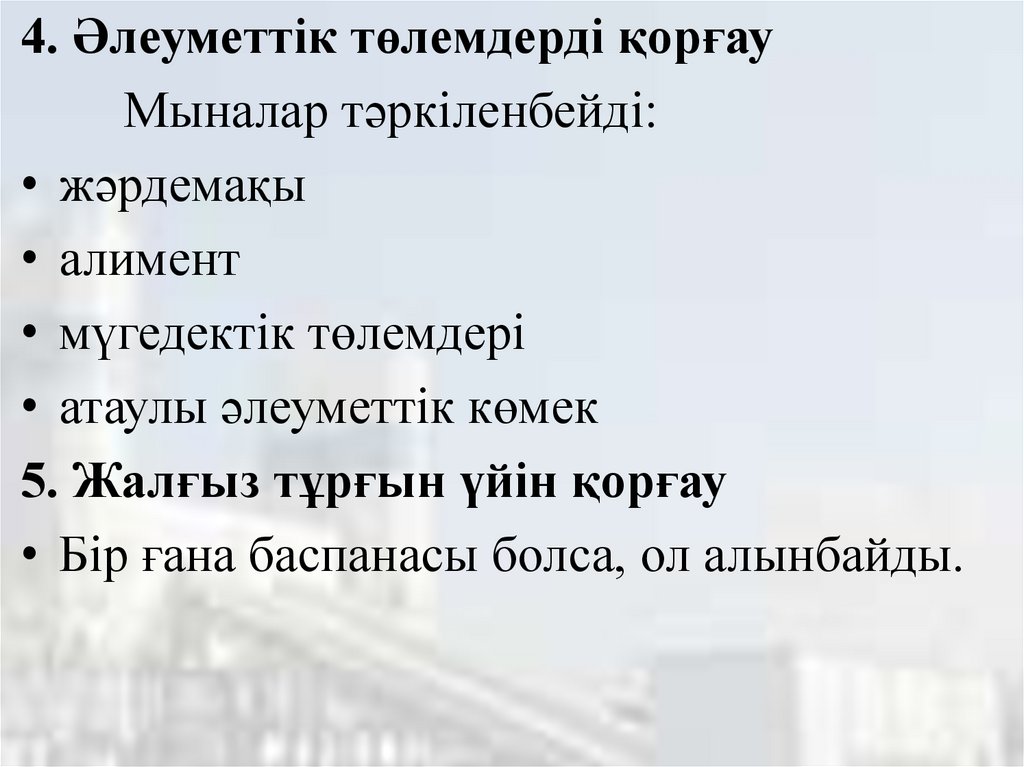 4. Әлеуметтік төлемдерді қорғауМыналар тәркіленбейді: