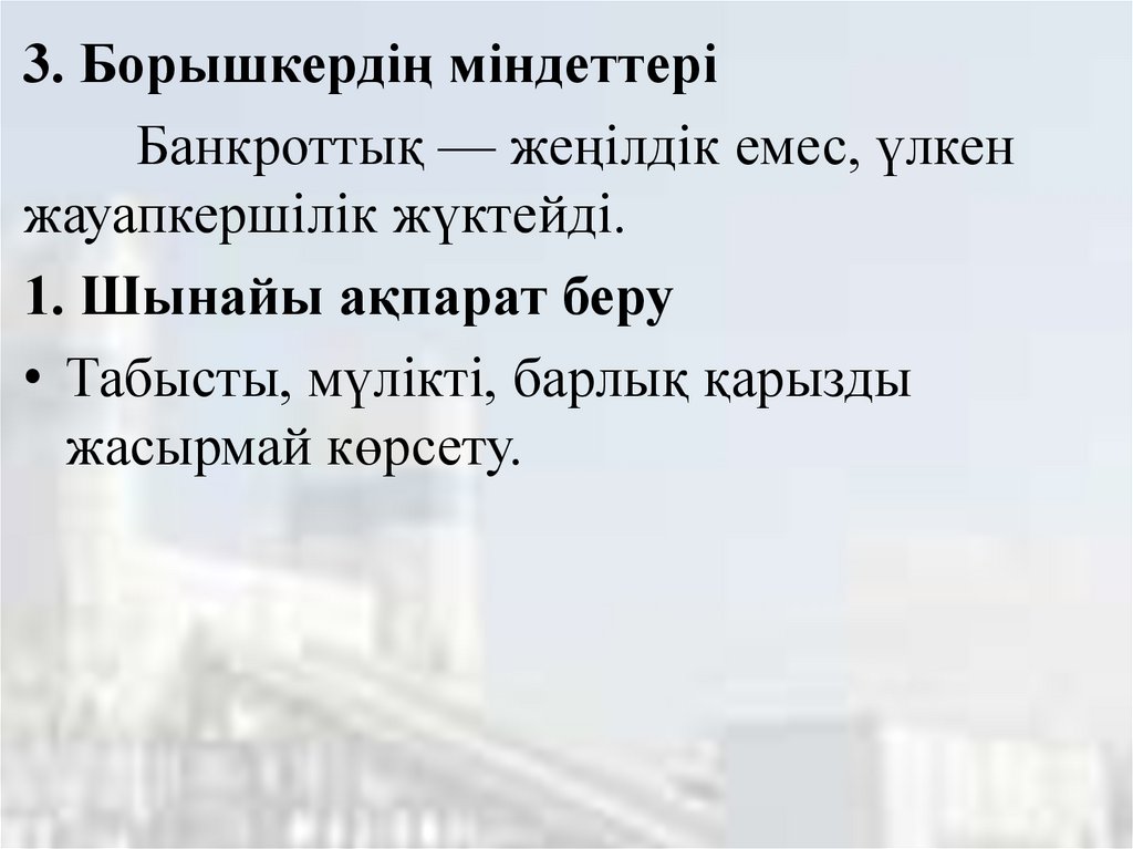 3. Борышкердің міндеттеріБанкроттық — жеңілдік емес, үлкен