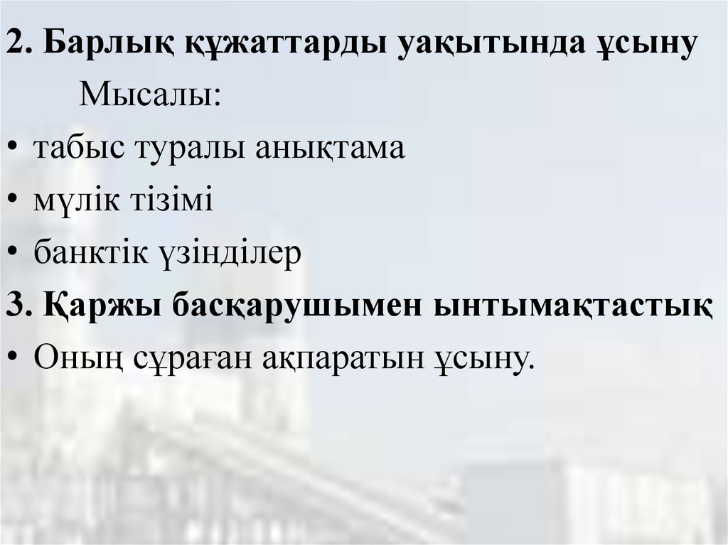 2. Барлық құжаттарды уақытында ұсынуМысалы: