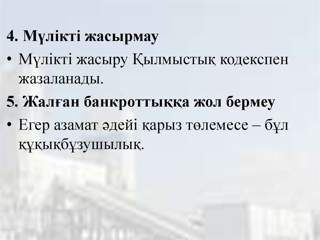 4. Мүлікті жасырмау• Мүлікті жасыру Қылмыстық кодекспен