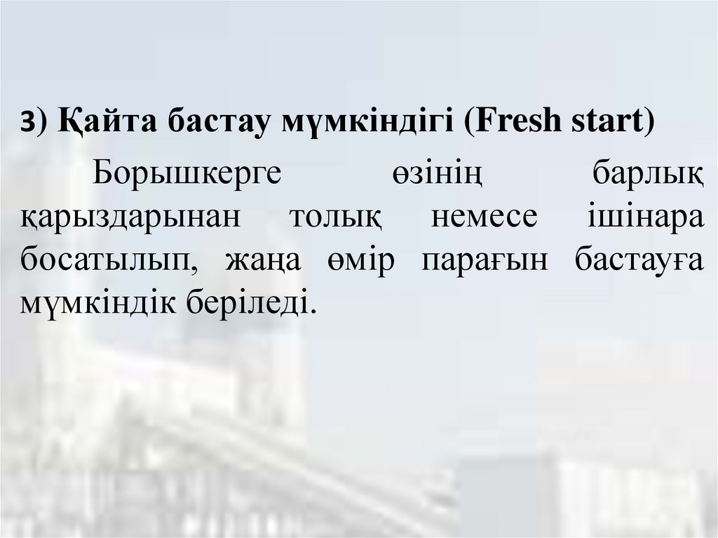 3) Қайта бастау мүмкіндігі (Fresh start)Борышкерге