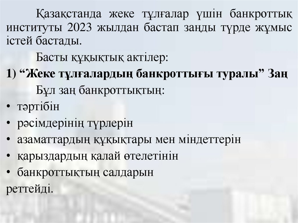 - Жеке тұлғалардың банкроттығының құқықтық