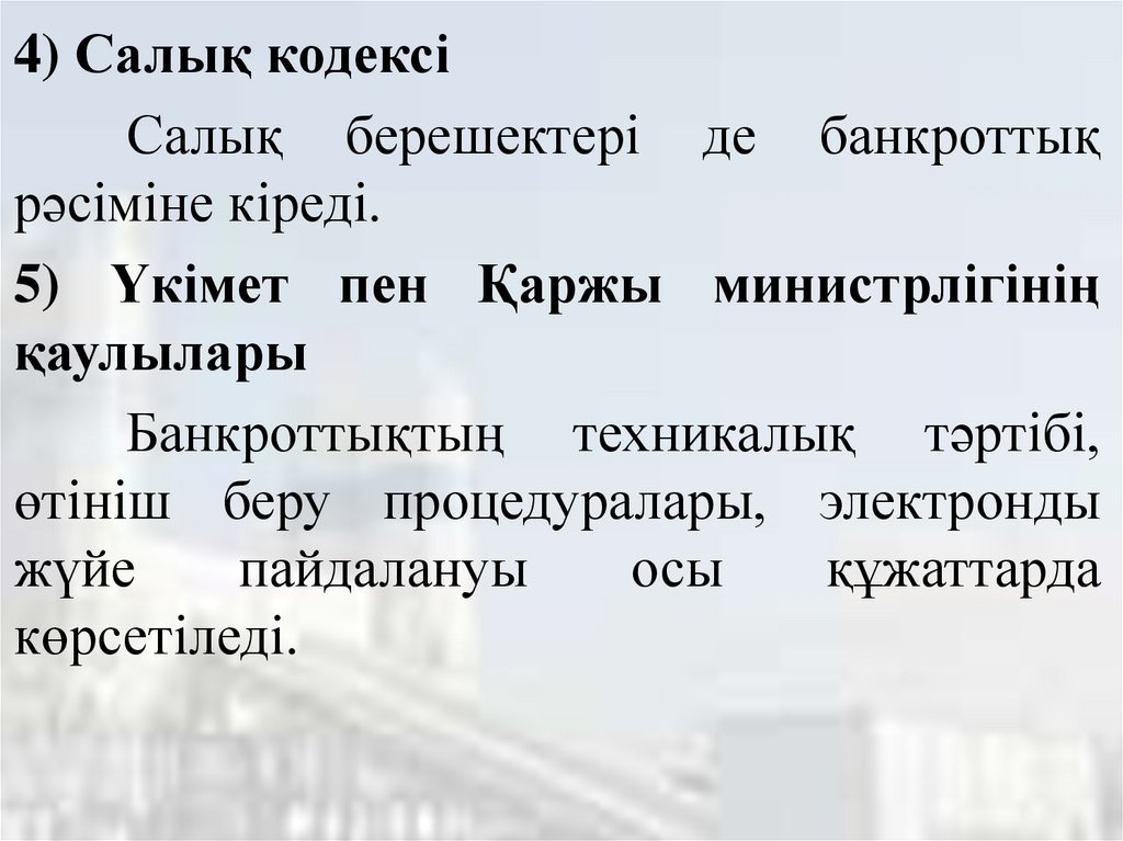 4) Салық кодексіСалық берешектері де банкроттық