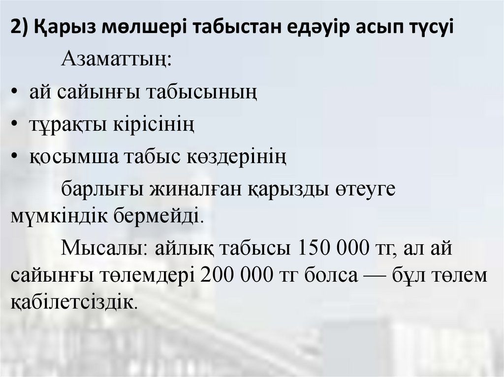 2) Қарыз мөлшері табыстан едәуір асып түсуіАзаматтың: