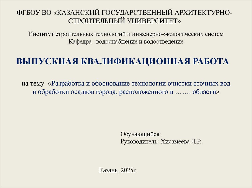 на тему «Разработка и обоснование технологии очистки сточных вод