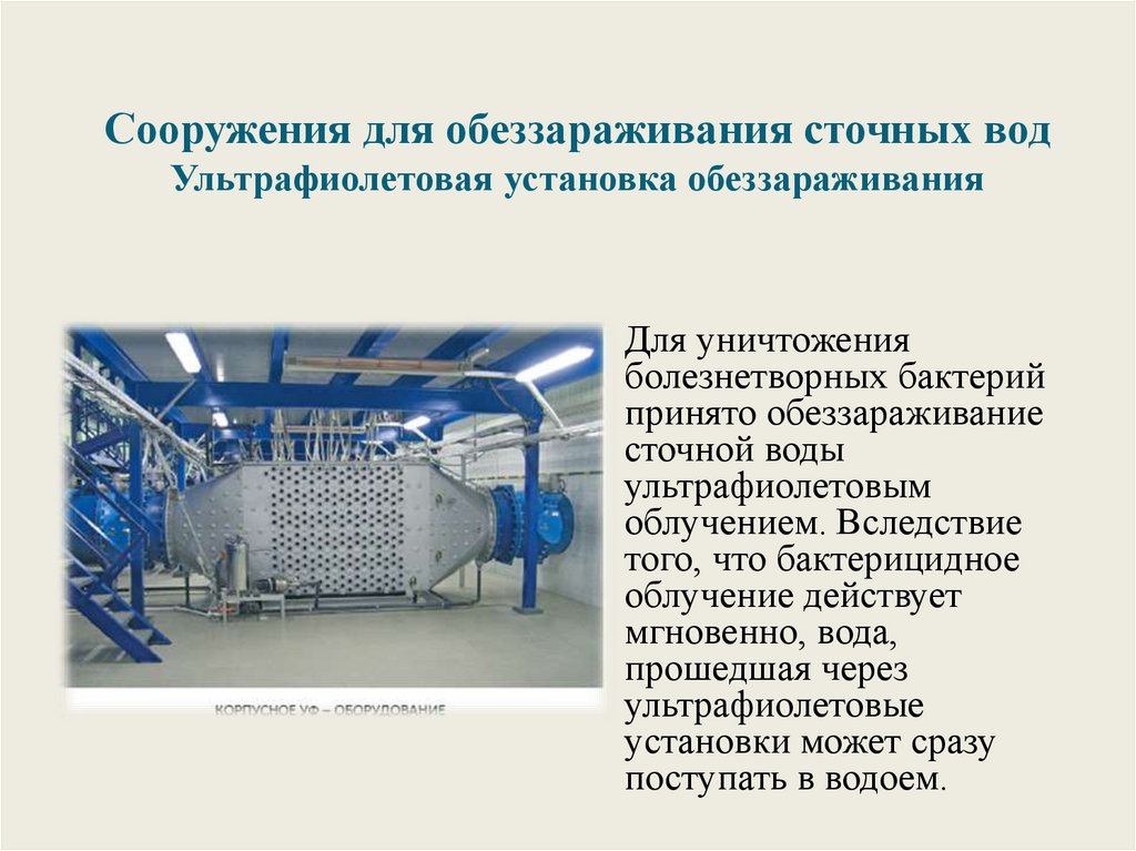 Сооружения для обеззараживания сточных водУльтрафиолетовая установка обеззараживания