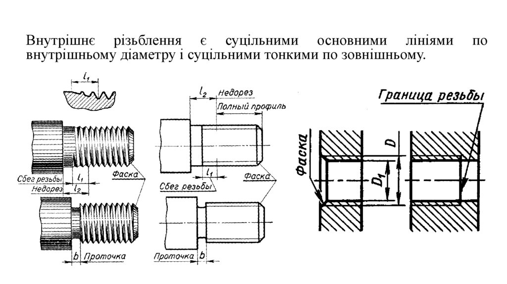 Внутрішнє різьблення є суцільними основними лініямивнутрішньому діаметру і суцільними тонкими по зовнішньому.