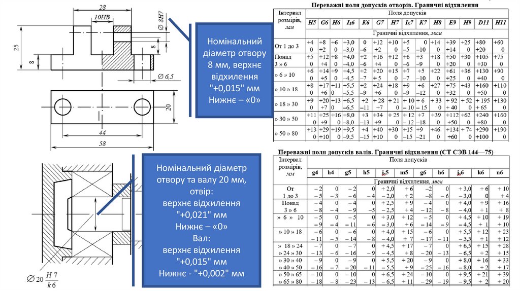 отвору та валу 20 мм,