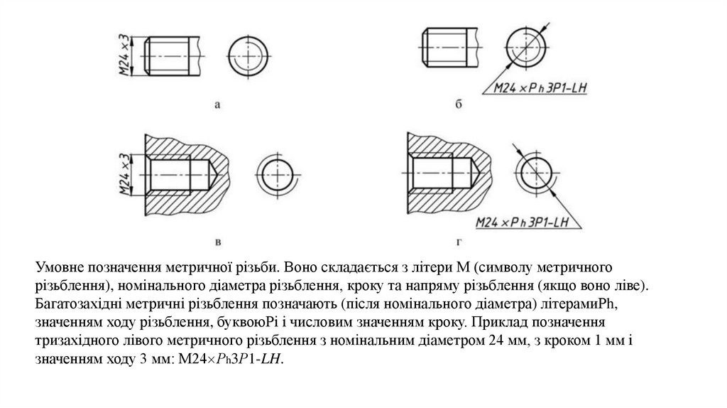 39. ПОЗНАЧЕННЯ РІЗЬБИ НА КРЕСЛЕННЯХ
