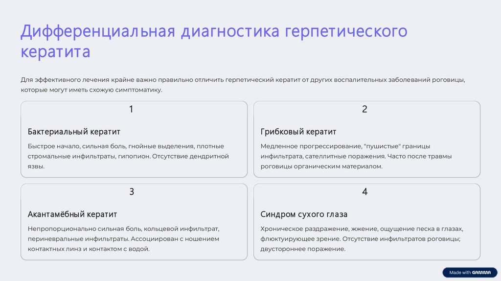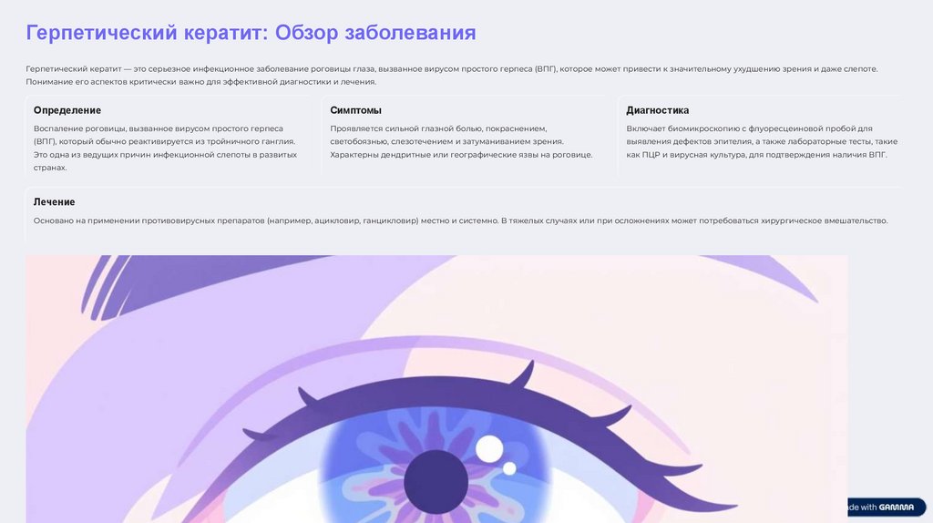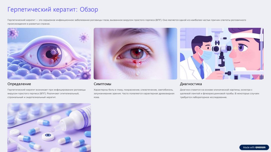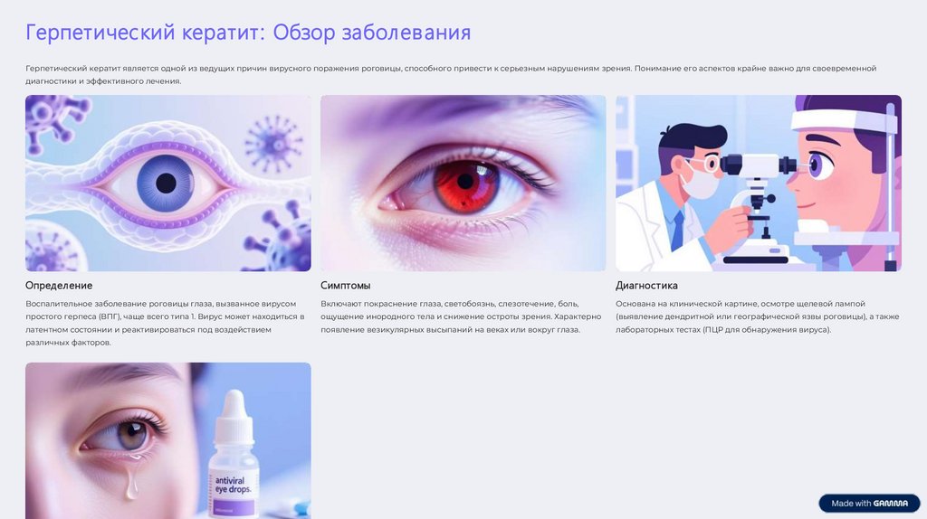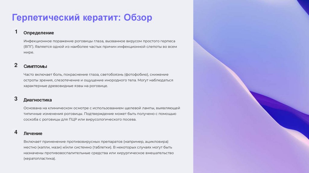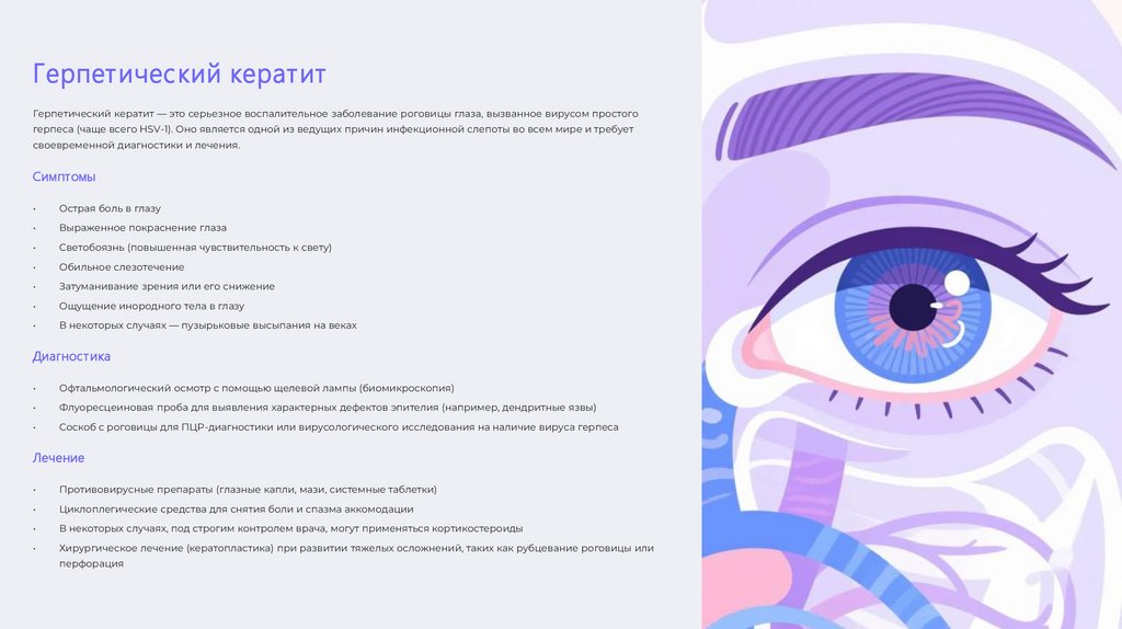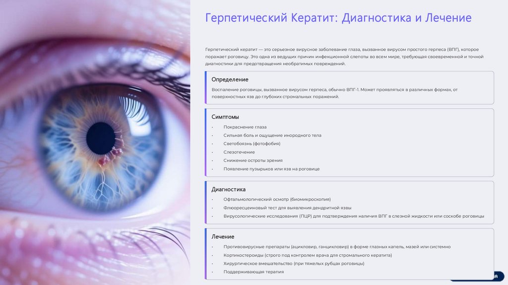 герпеса (чаще всего HSV-1). Оно является одной из ведущих причин инфекционной слепоты во всем мире и требует