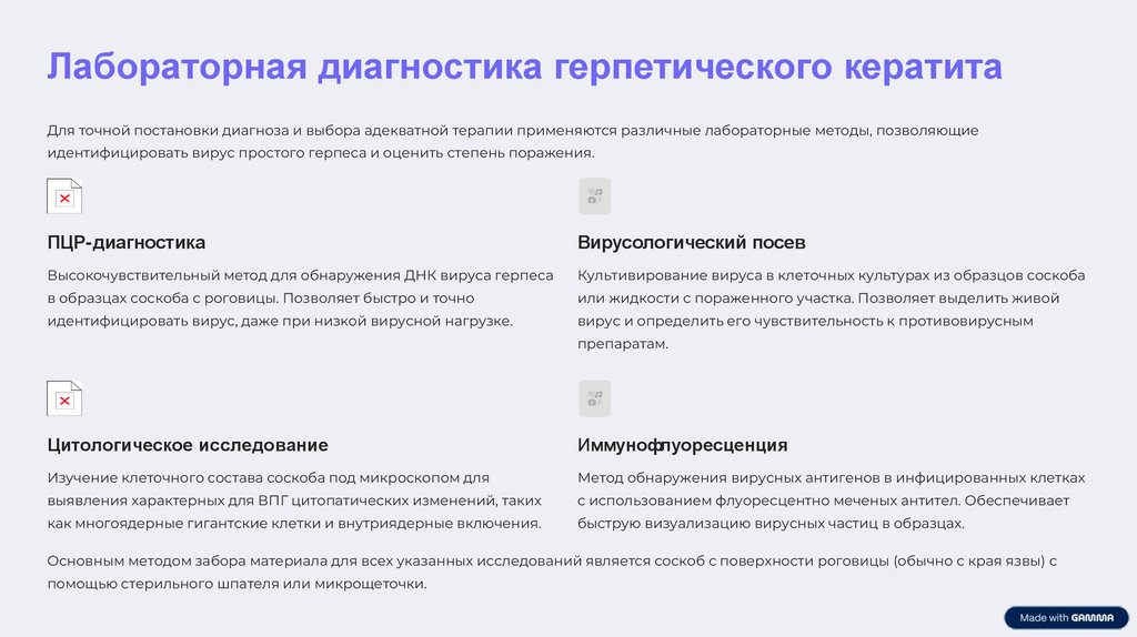 соскоба с роговицы для ПЦР или вирусологического посева.