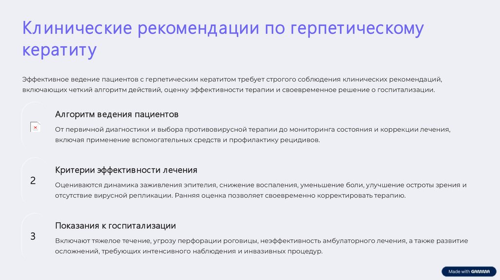 Эффективное ведение пациентов с герпетическим кератитом требует строгого соблюдения клинических рекомендаций,