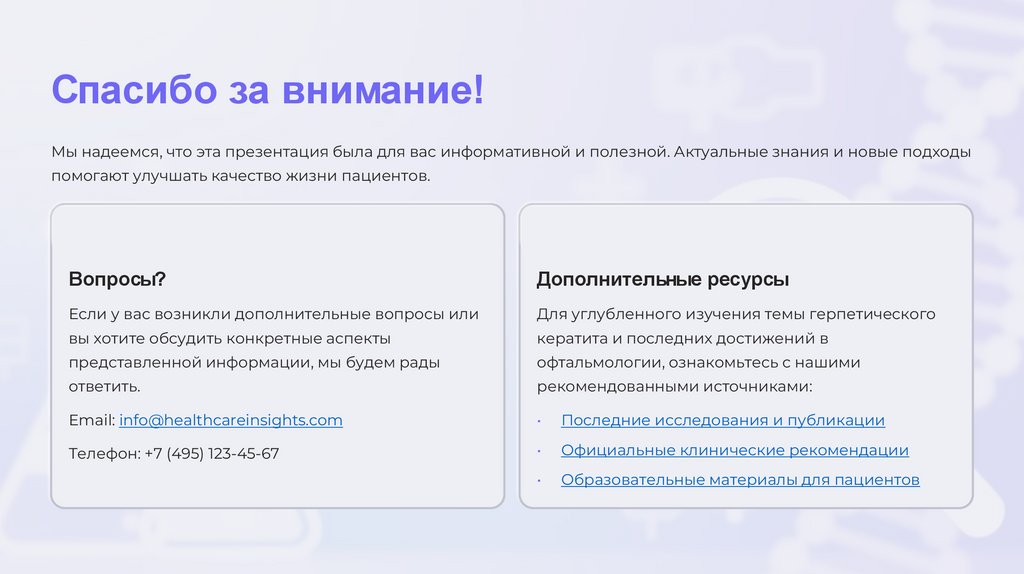 Эти направления лечения обещают значительно улучшить прогноз для пациентов с герпетическим кератитом и сократить риск потери зрения.