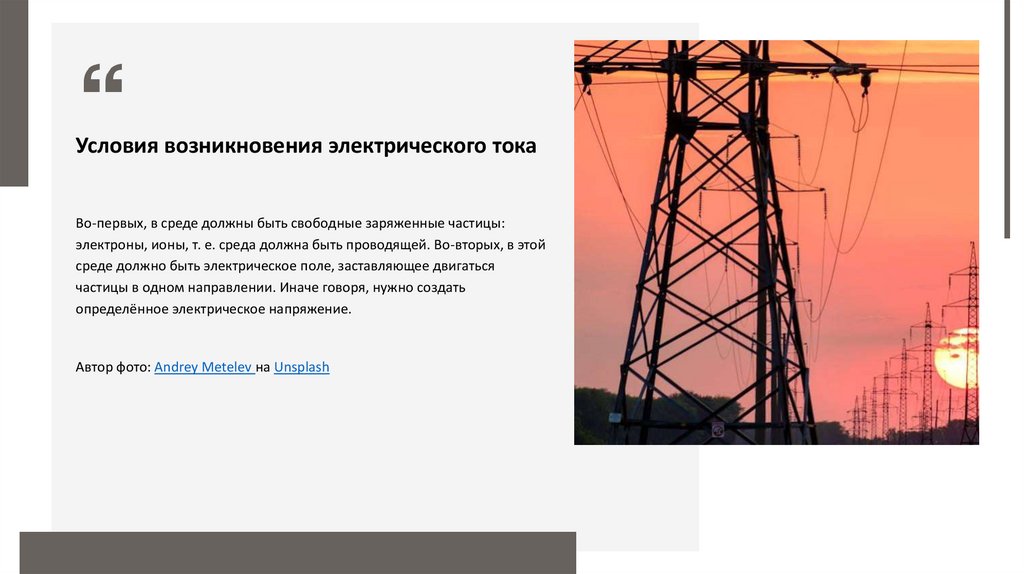 Условия возникновения электрического токаВо-первых, в среде должны быть свободные заряженные частицы: