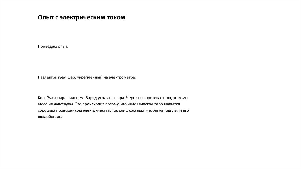 хорошим проводником электричества. Ток слишком мал, чтобы мы ощутили его