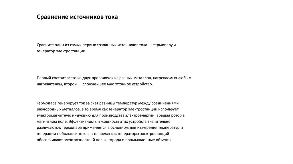 Сравнение источников токаСравните один из самых первых созданных источников тока — термопару и