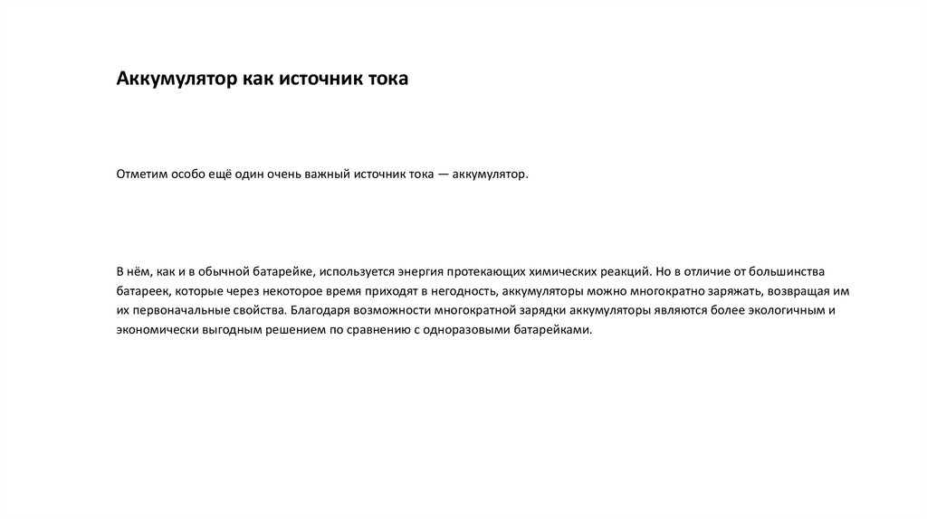 Аккумулятор как источник токаОтметим особо ещё один очень важный источник тока — аккумулятор.