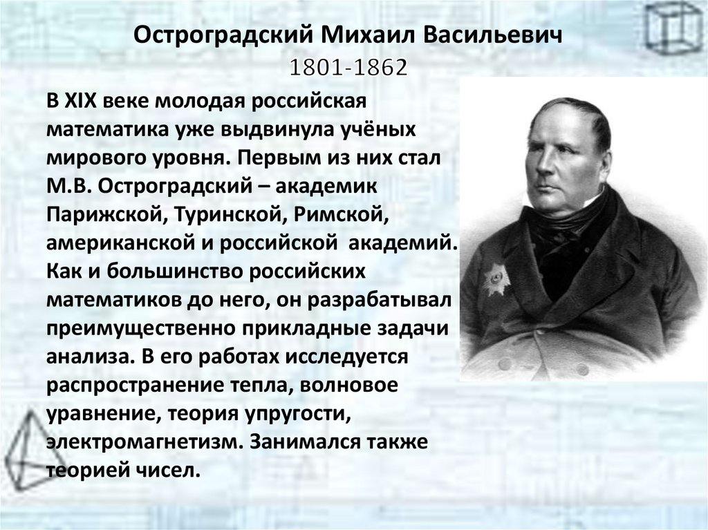 Остроградский Михаил ВасильевичВ XIX веке молодая российская