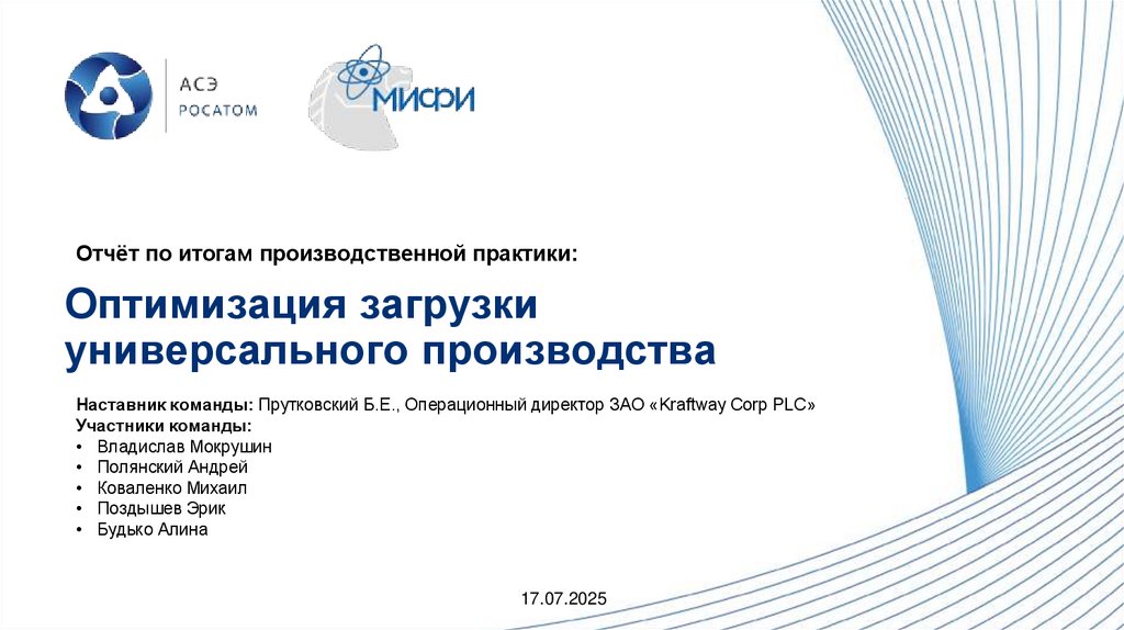 Наставник команды: Прутковский Б.Е., Операционный директор ЗАО «Kraftway Corp PLC»