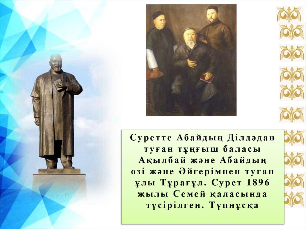 С у р е т т е Аб а й д ы ң Д і л д ә д а нтуған тұңғыш баласы
