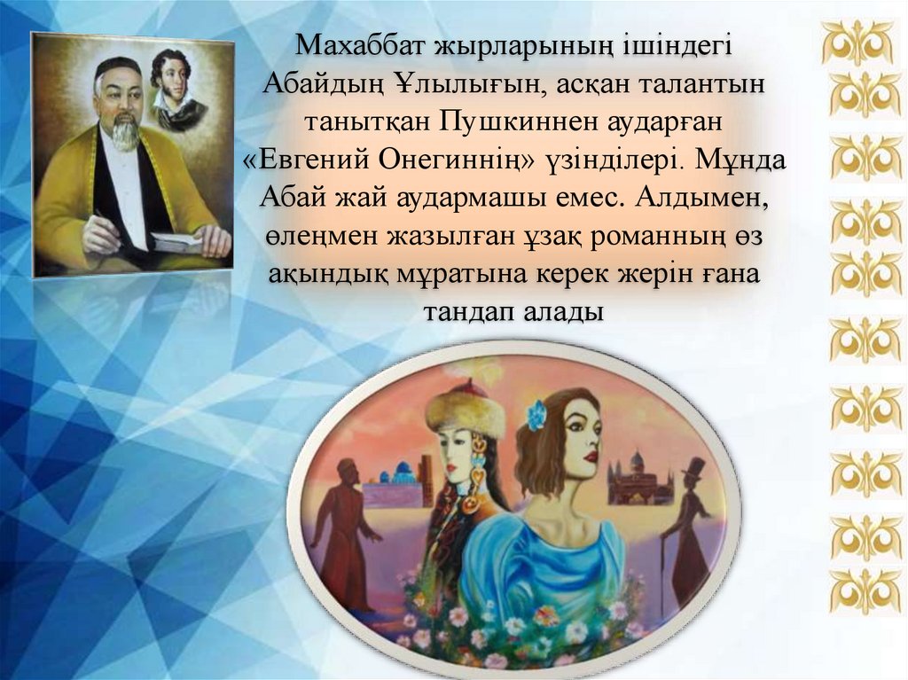 Махаббат жырларының ішіндегіАбайдың Ұлылығын, асқан талантын