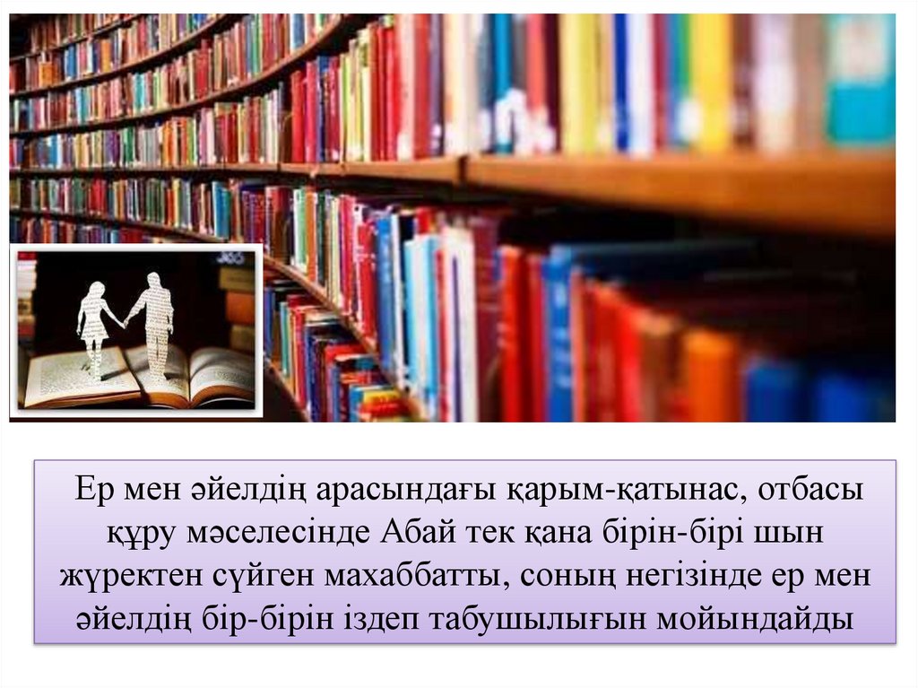 Ер мен әйелдің арасындағы қарым-қатынас, отбасықұру мәселесінде Абай тек қана бірін-бірі шын