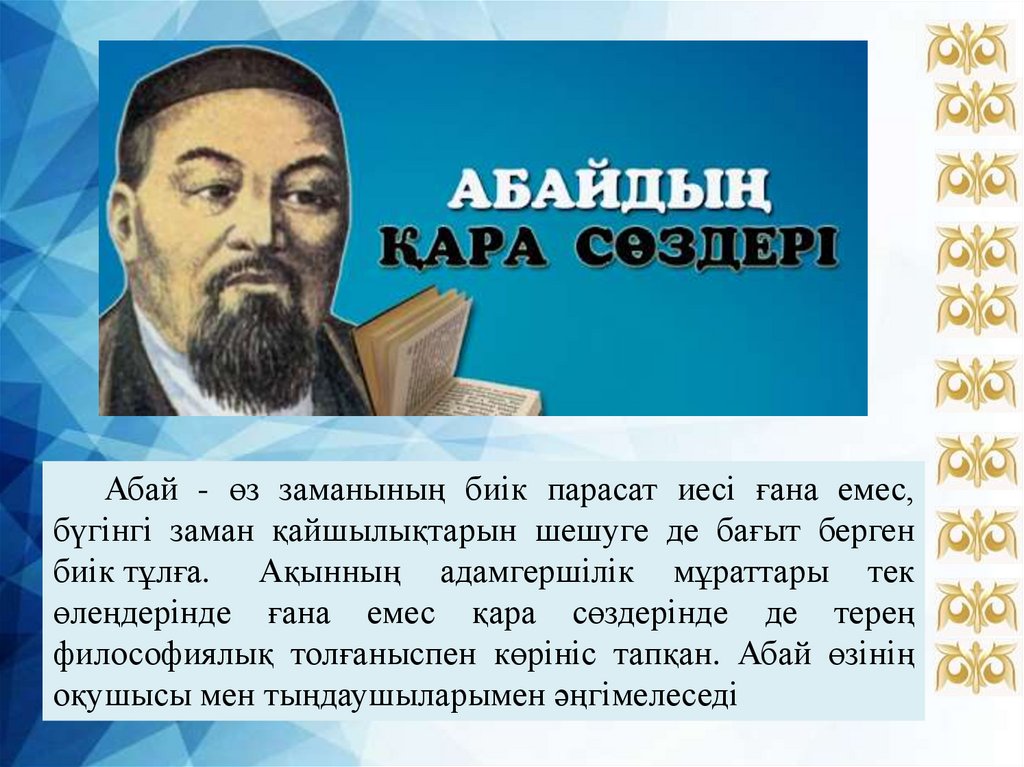 өлеңдерінде ғана емес қара сөздерінде де терең