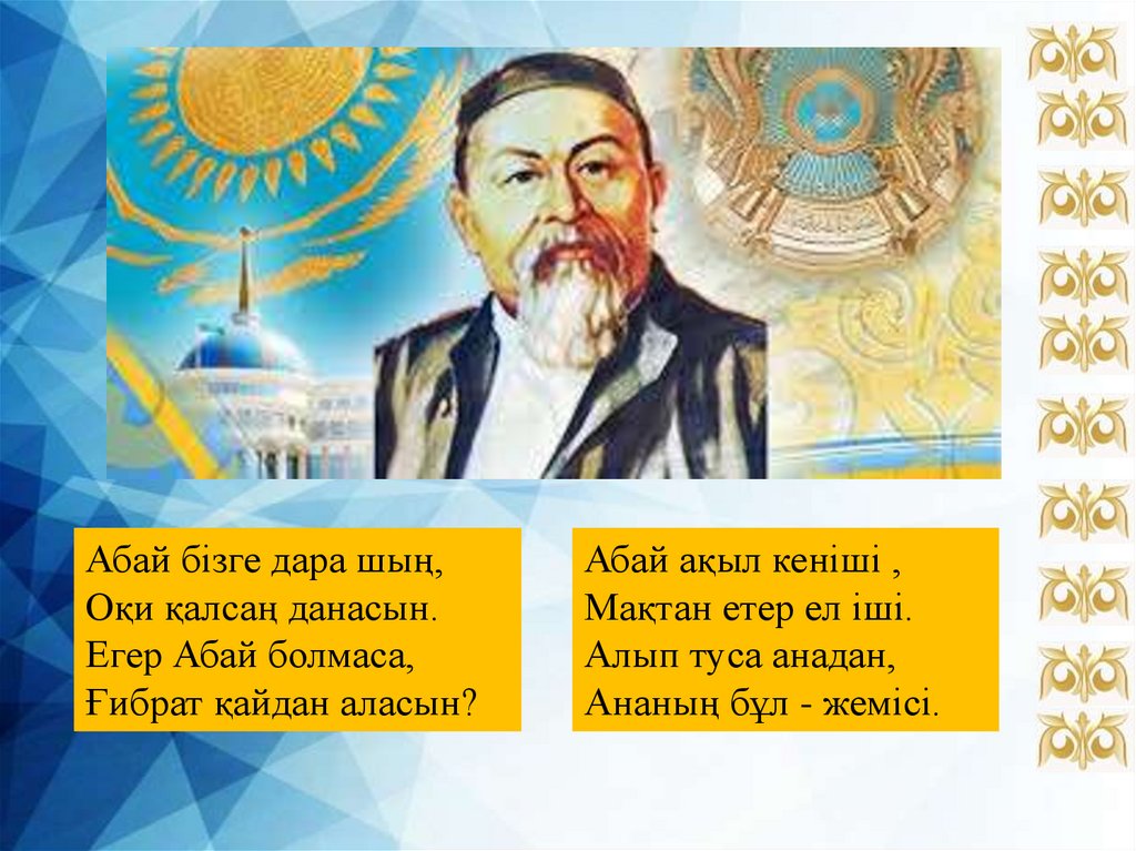 балаларым мен ертеңгі ұрпағыма Абайдан артық,