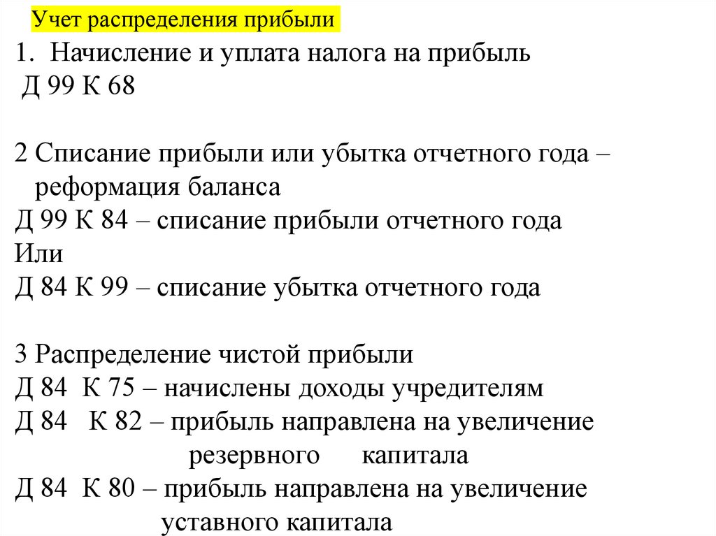 Учет распределения прибыли1. Начисление и уплата налога на прибыль