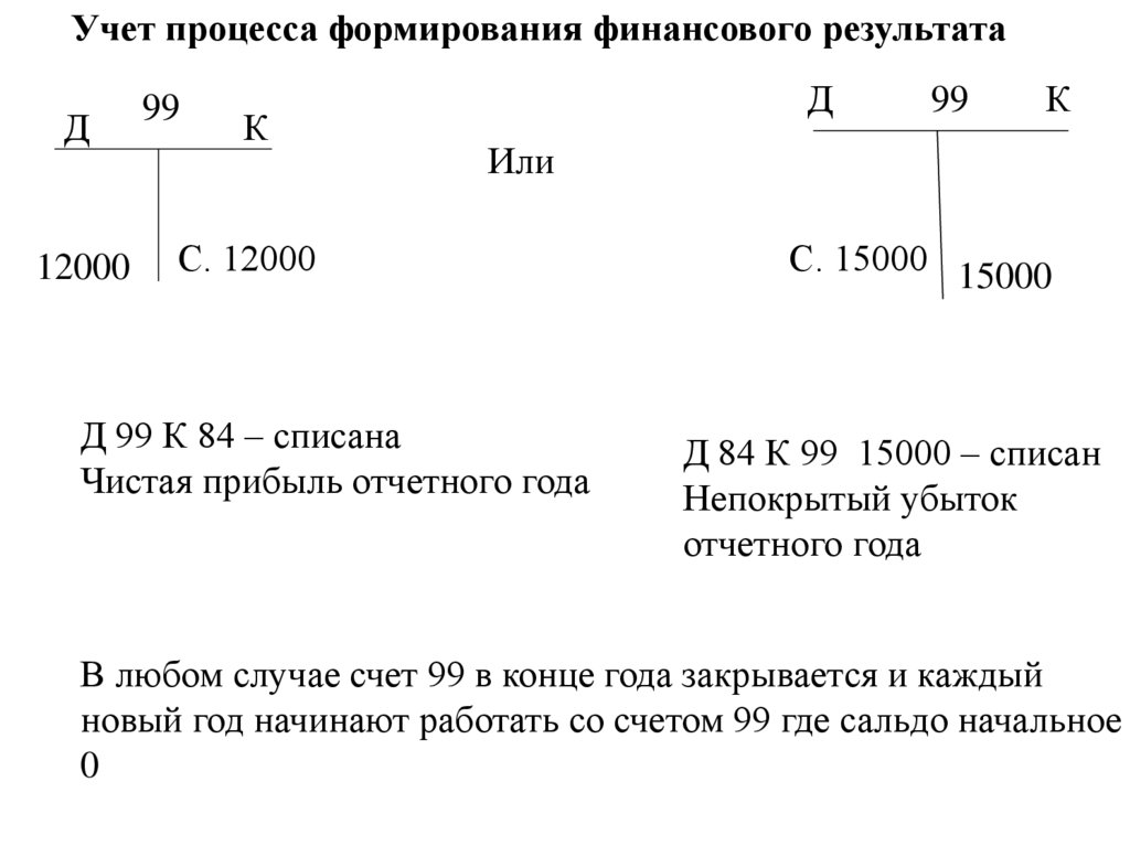 Д 99 К 84 – списание прибыли отчетного года