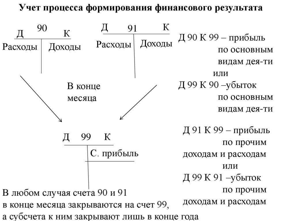 прибыль или убыток получен. Счет 91 закрывают в конце