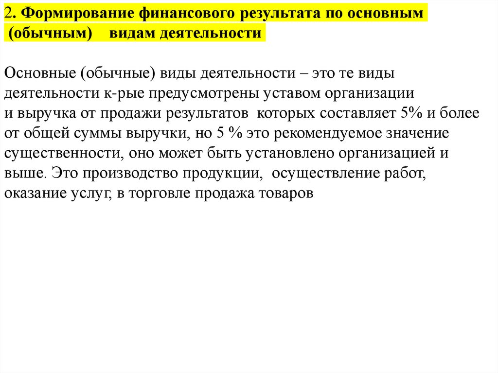 2. Формирование финансового результата по основным(обычным) видам деятельности