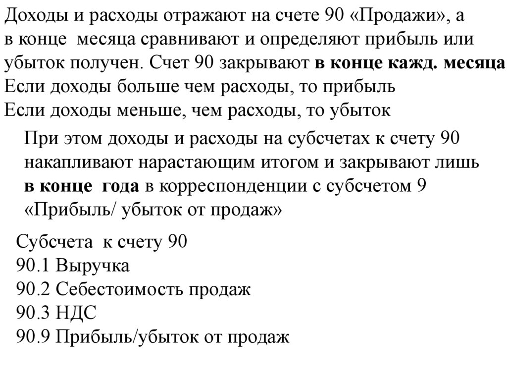При этом доходы и расходы на субсчетах к счету 90