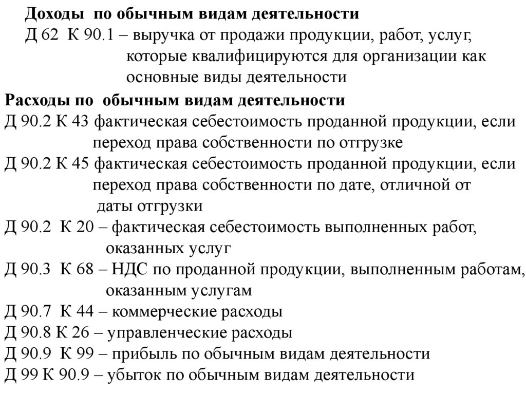 Доходы по обычным видам деятельностиД 62 К 90.1 – выручка от продажи продукции, работ, услуг,