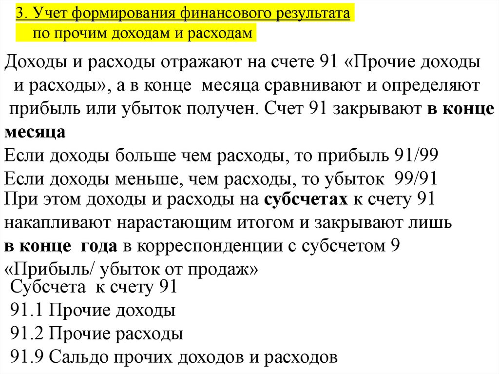 3. Учет формирования финансового результатапо прочим доходам и расходам