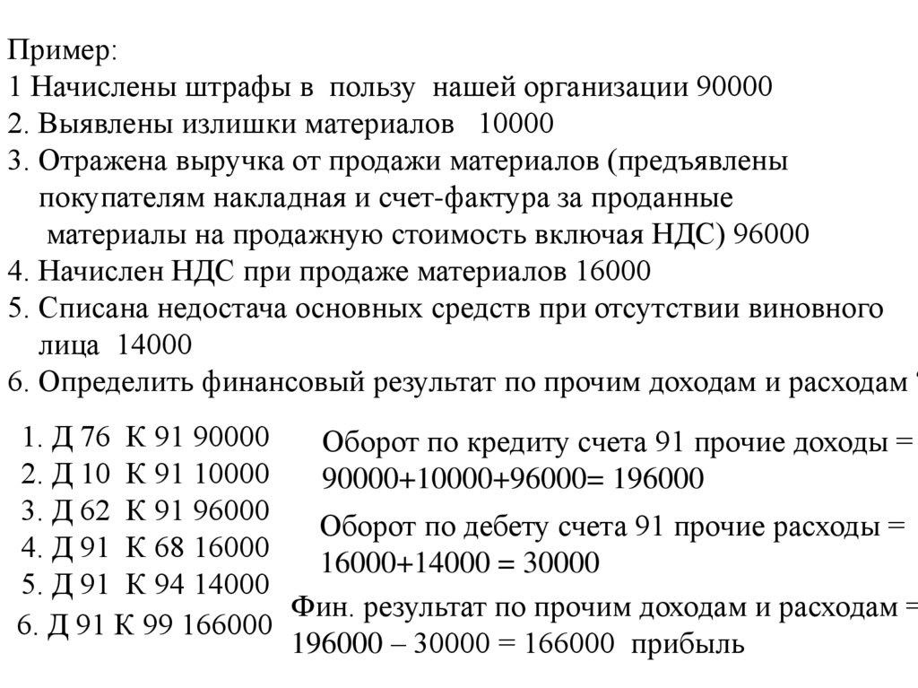 Оборот по кредиту счета 91 прочие доходы =