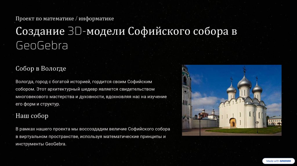 Проект по математике / информатикеСоздание 3D-модели Софийского собора в