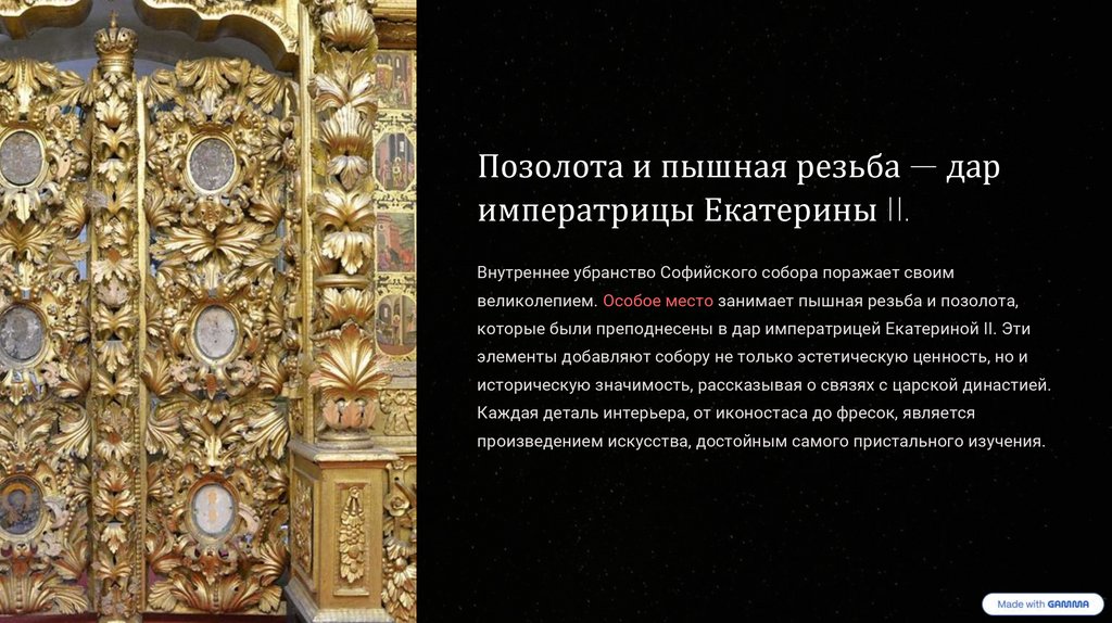 Позолота и пышная резьба — даримператрицы Екатерины II.
