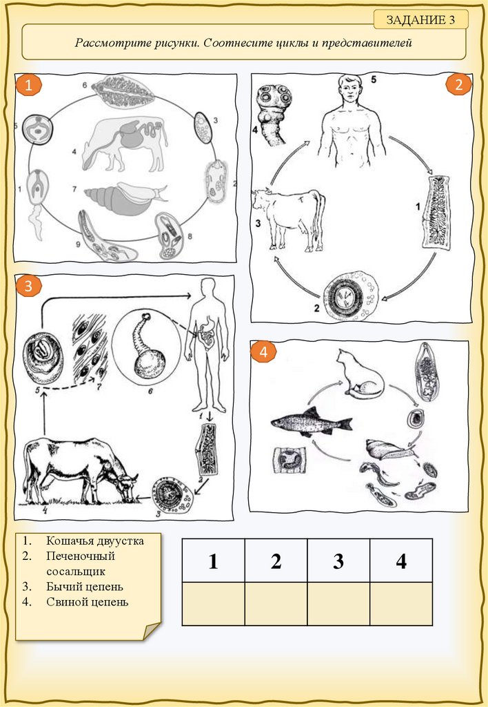 ЗАДАНИЕ 3Рассмотрите рисунки. Соотнесите циклы и представителей